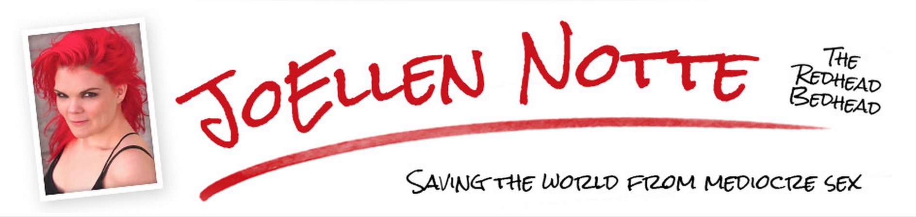 Website header reading "JoEllen Notte, The Redhead Bedhead, Saving the World from Mediocre Sex" in a handwriting-style font