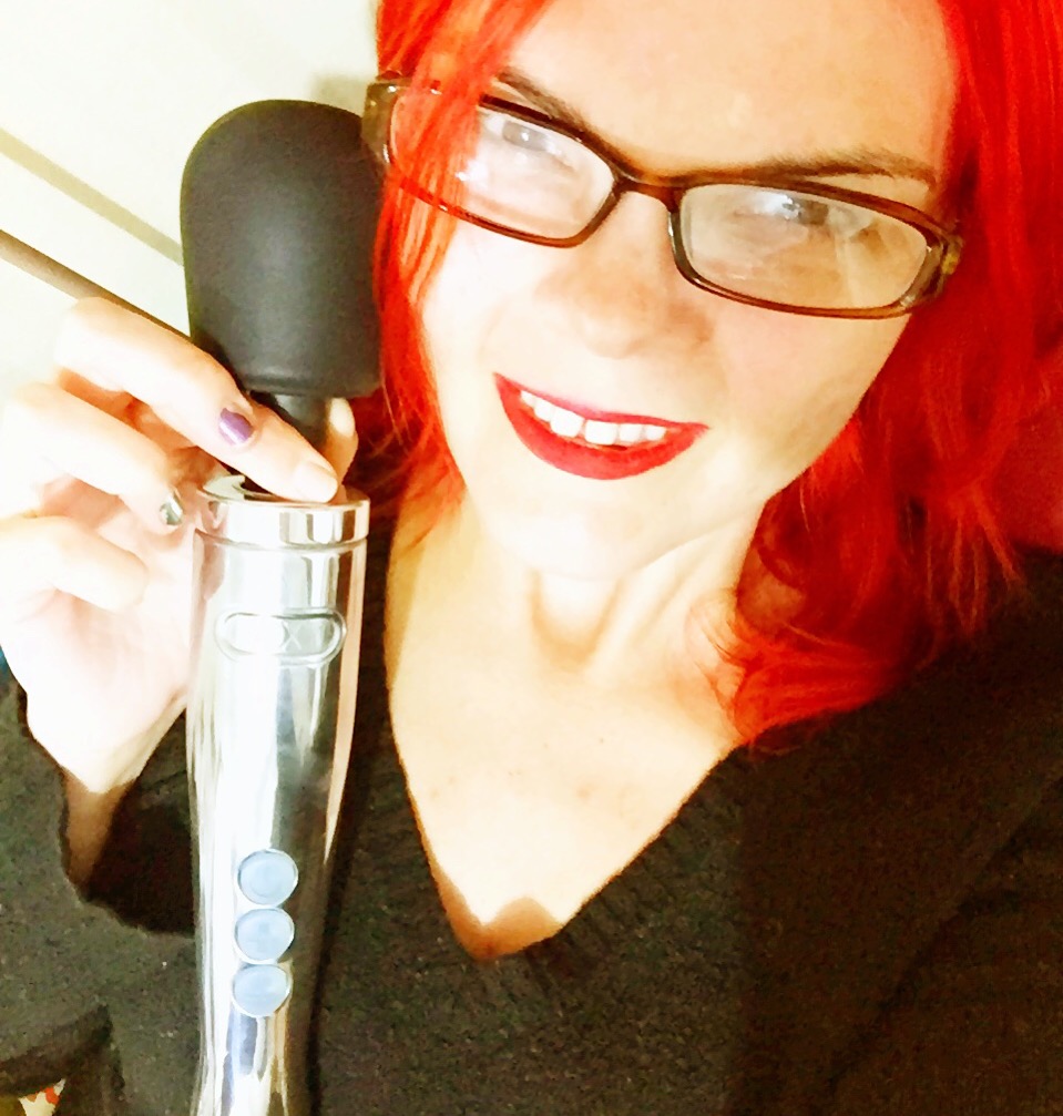 JoEllen holding a silver Doxy Die Cast Wand