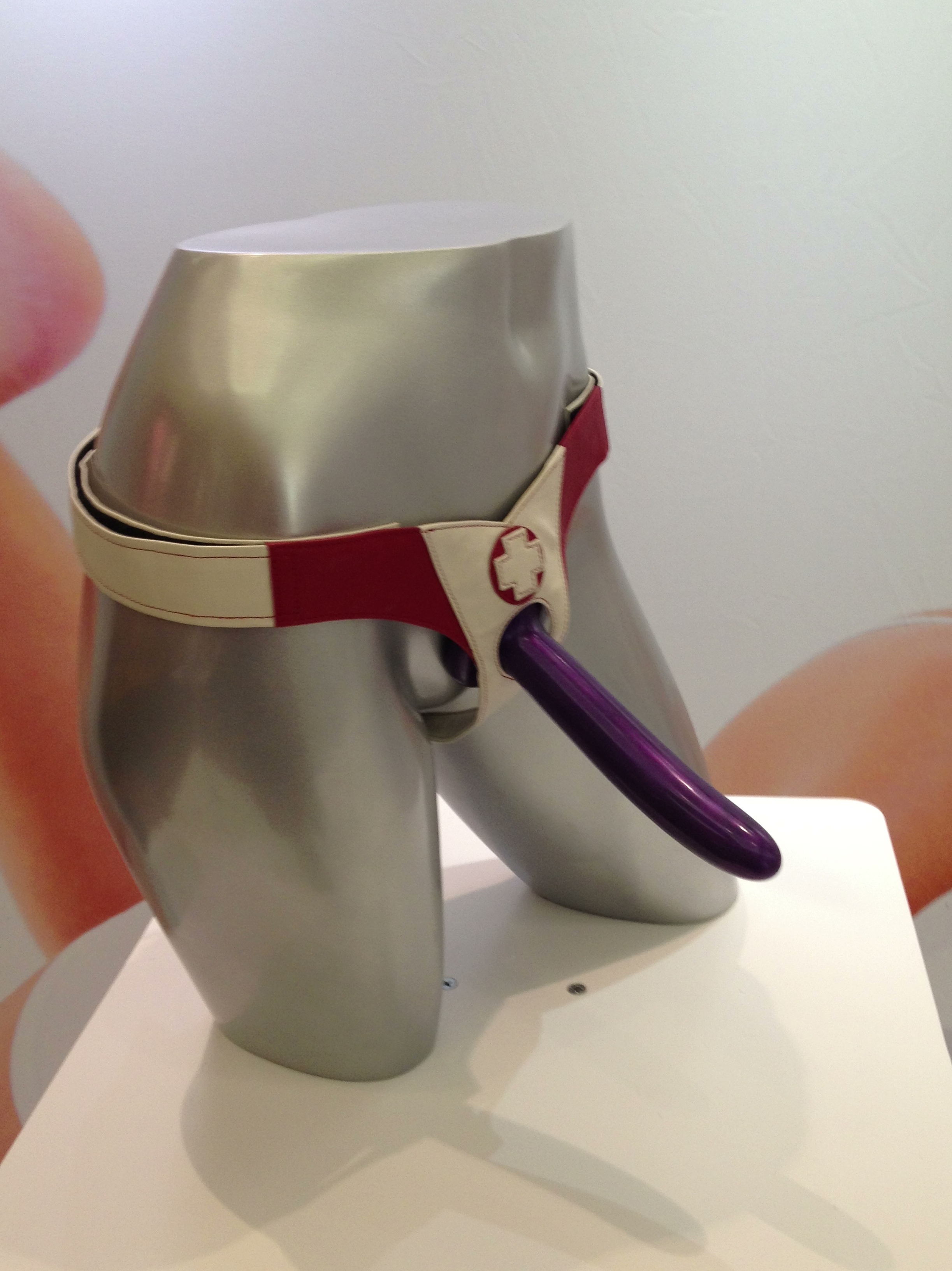 Finally (find each in the pictures- this list is in on particular order!) we had Liberator wedges that come packed in a little cube, Tenga’s new vibes that look like Mochi, a beautiful new (not yet available) harness from SpareParts, some whimsical ceramic pieces (from folks who were so convinced that they were the first with the idea that they corrected me when I told them how much I love the ceramic toy I already own), a sea of Fun Factory’s Stronic pulsators, soap in delightfully dirty packaging, my newest friend from Jimmyjane- the Form 4, The Revel Body (aka, that round vibe from the Indiegogo campaign), Crave who let me build my own vibe, Vibratex with The Hitachi Original Magic Wand, Sportsheets – I’m sorry, the Best Fetish Company award-winner, Sportsheets, Aneros (where I finally met the illustrious CT!) and so much Sliquid I thought I was in lube heaven!