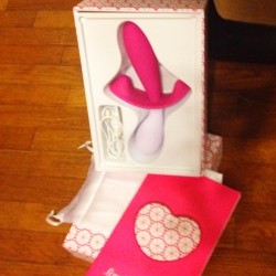 The OhMiBod Lovelife Adventure is a triple stimulation vibrator- that’s right, triple: it stimulates the clitoris, the g-spot and the anal opening (that’s important to note if you are anal curious but penetration leery- the Adventure doesn’t penetrate the anus- it’s just nice to it externally.) The handle is ABS plastic and the body of the toy is silicone. It is rechargeable and splash-proof. Oh, also, it’s got 3 motors… 3. Just saying.